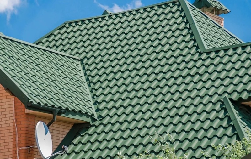 Особенностью является комбинация матовой текстуры покрытия с профилем, имитирующим натуральную черепицу, без видимых стыков. Материал устойчив к выцветанию и царапинам, подходит для регионов с суровым климатом. В цвете RAL 6005 он добавляет зданию естественный, спокойный вид, подчеркивая экологичность дизайна.